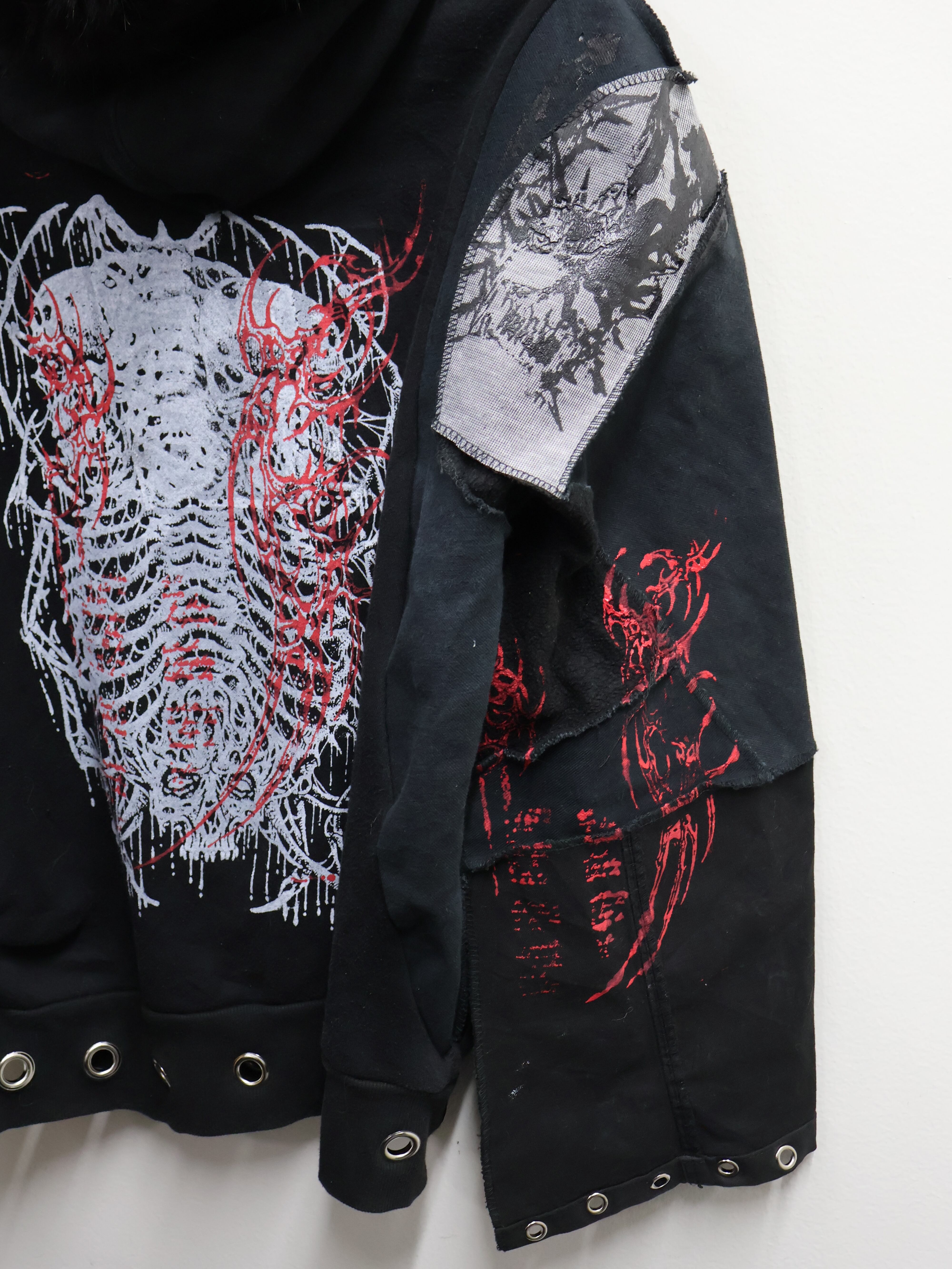 一目で“強い”が伝わる、存在感フル装備の一点物パーカー。