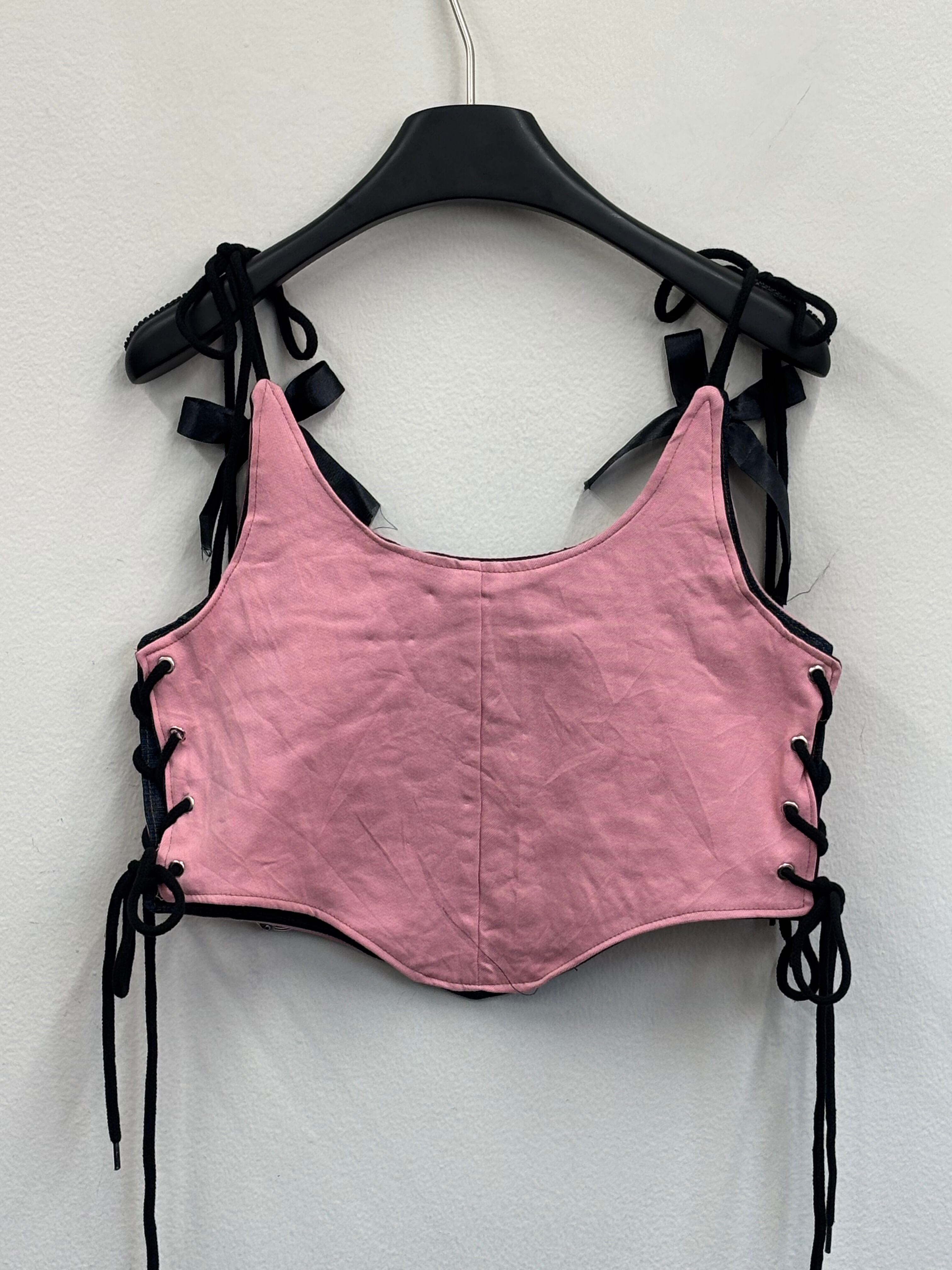 くすみピンク×ブラックのコントラストが一瞬で目を奪う、主役級リメイクビスチェ。