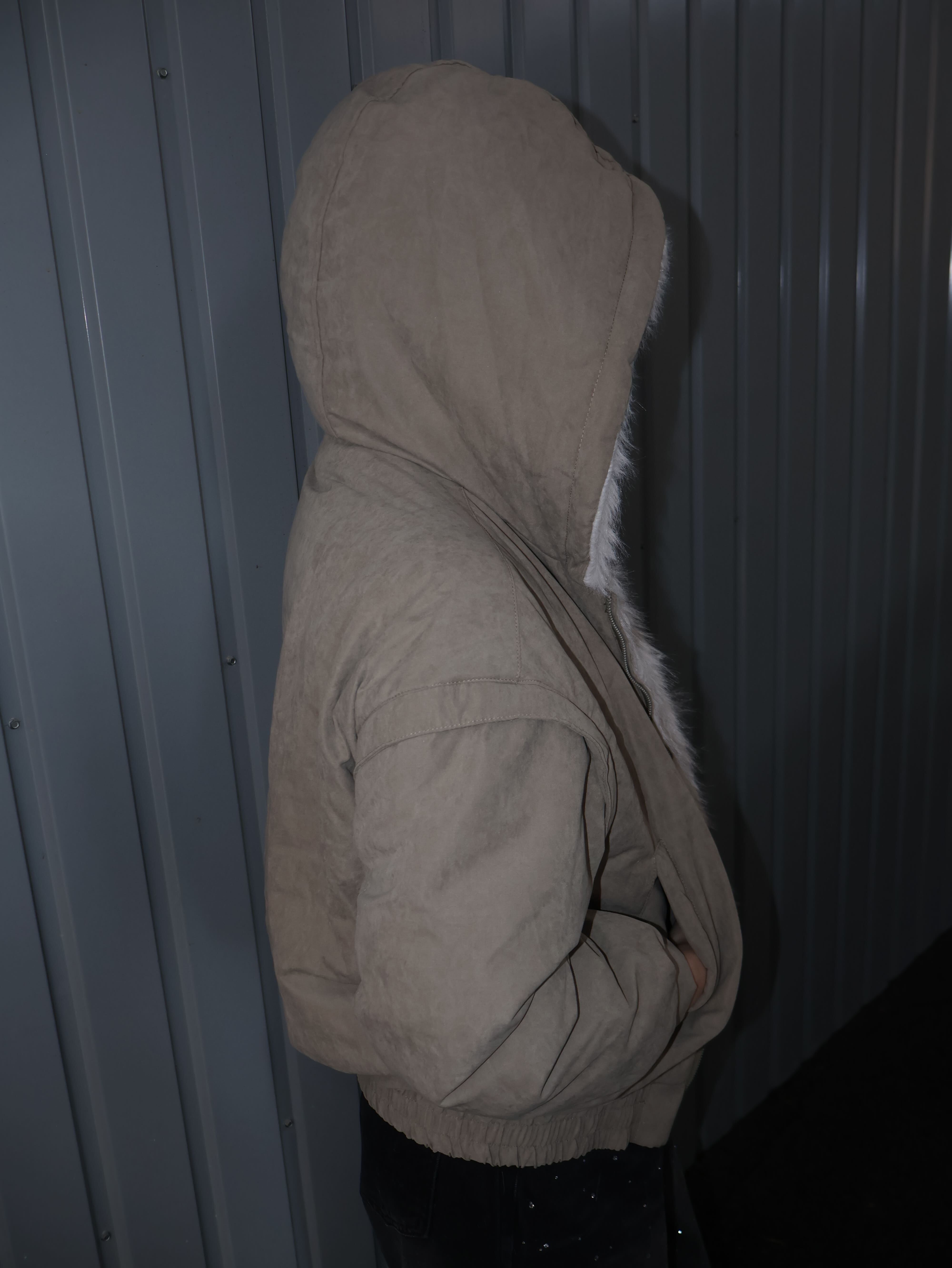 主役級Y2K ファーフードショートブルゾン