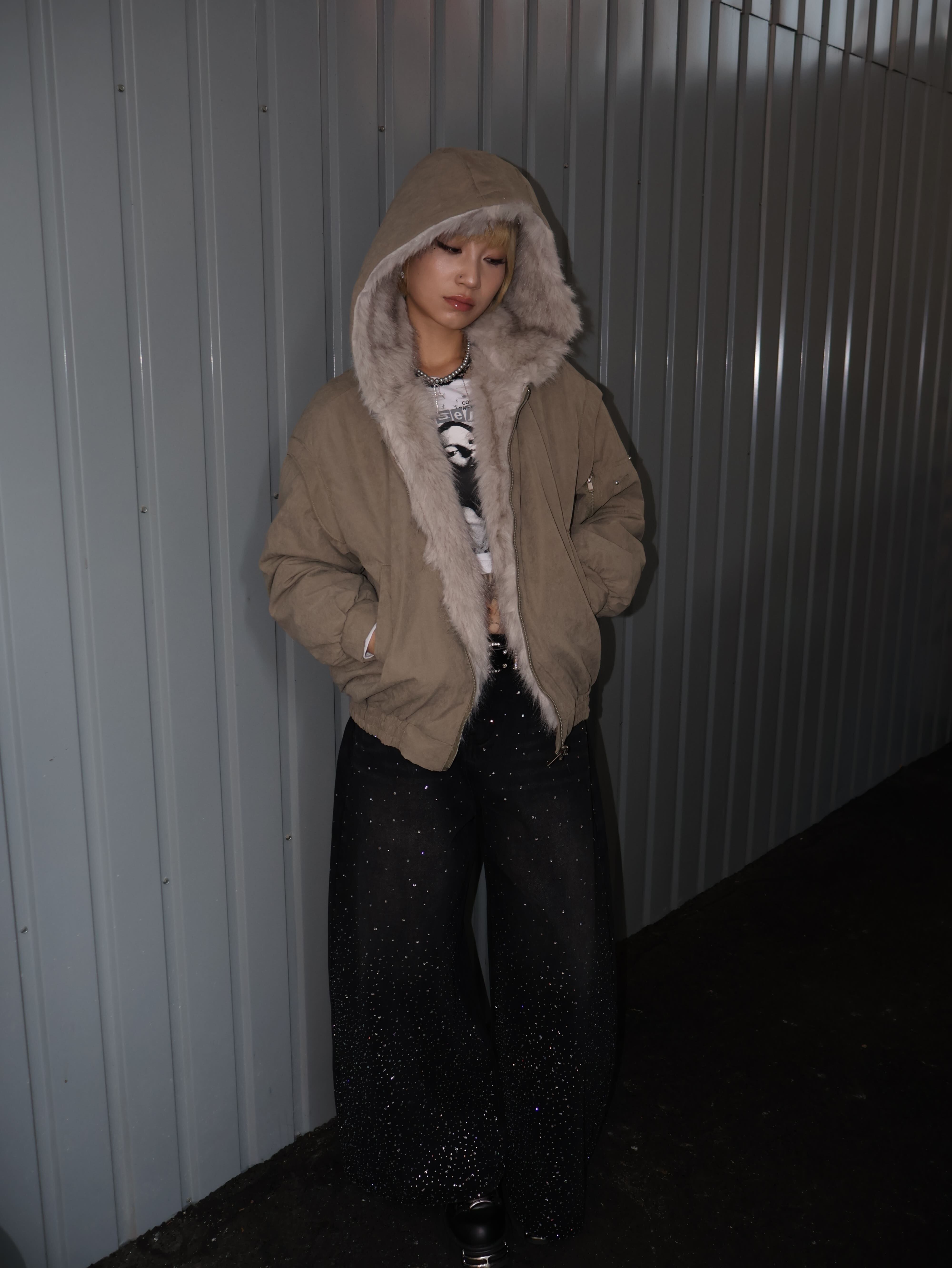 ストリートにもY2Kにも振れるバランスで、寒い季節の主役アウターとして活躍。