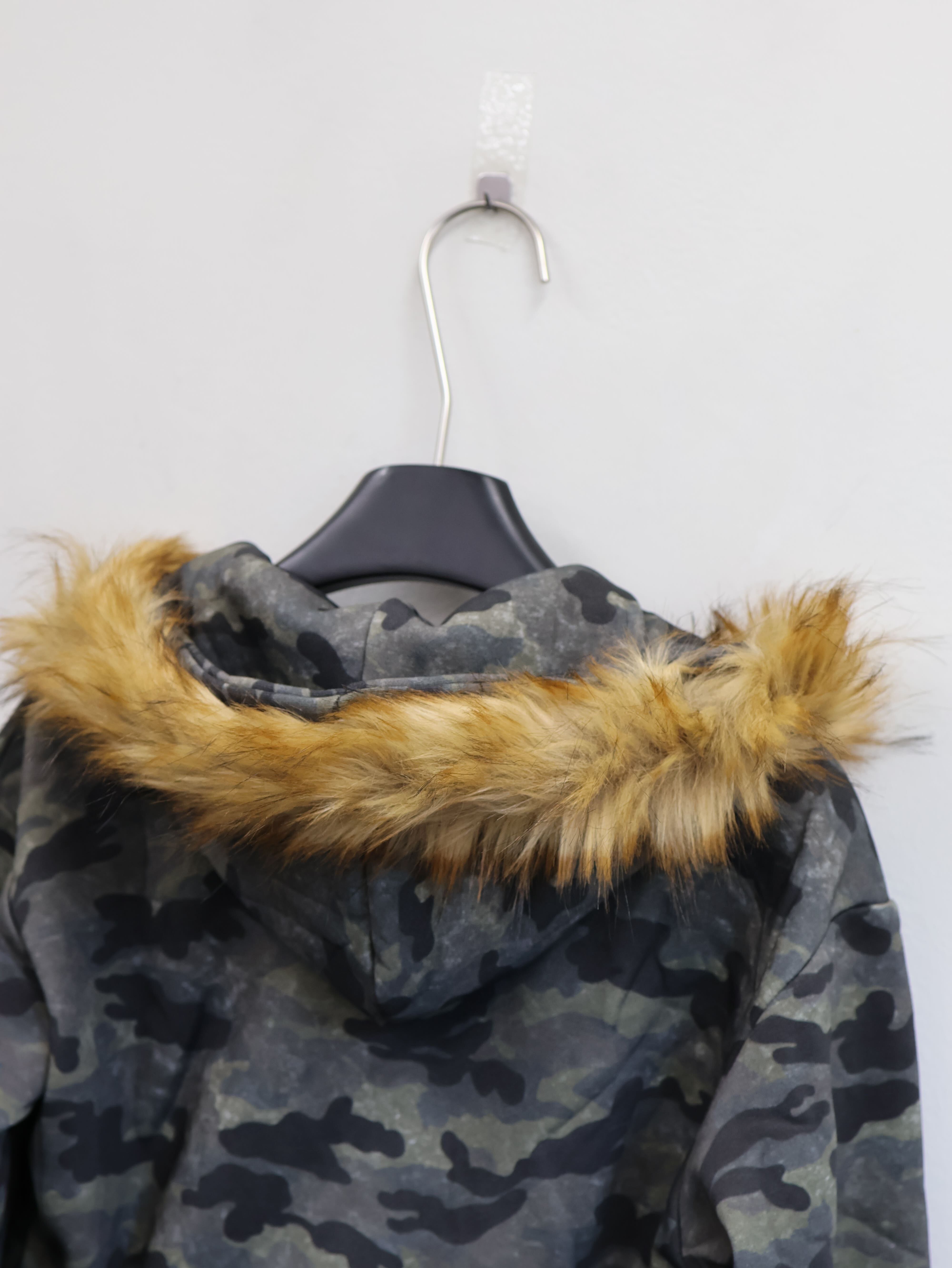 存在感バツグンのフェイクファーフード×迷彩柄の最強コンビ。ショート丈だからウエスト位置が高く見えて、どの角度からでもスタイルUPできる“盛れシルエット”。カジュアルなのにしっかり高見えする素材感で、スト系・Y2K・平成ギャルまで幅広い系統にマッチ。ミニスカやローライズとの相性が抜群で、羽織るだけで海外ガールみたいな強め仕上がりになります。