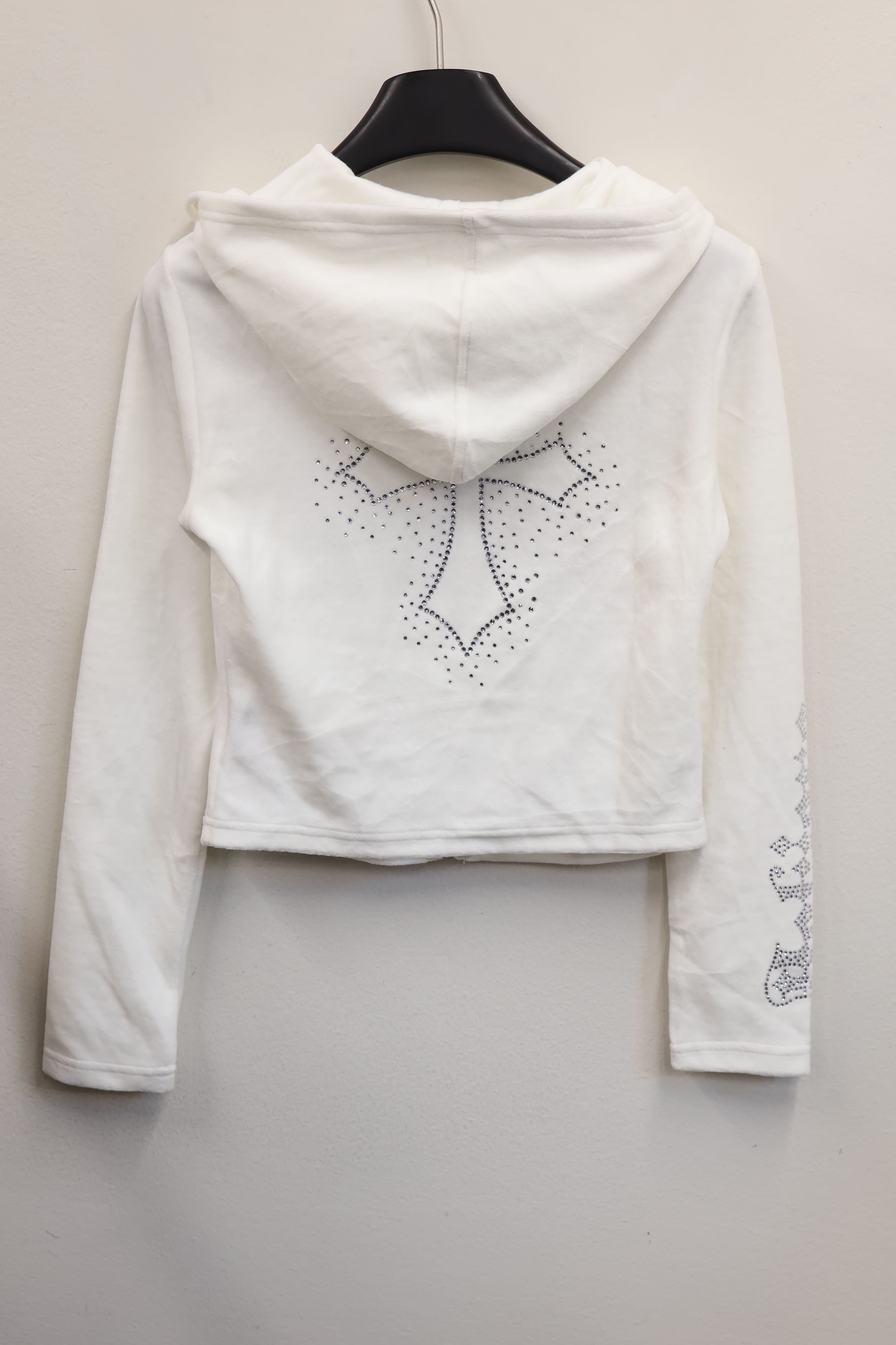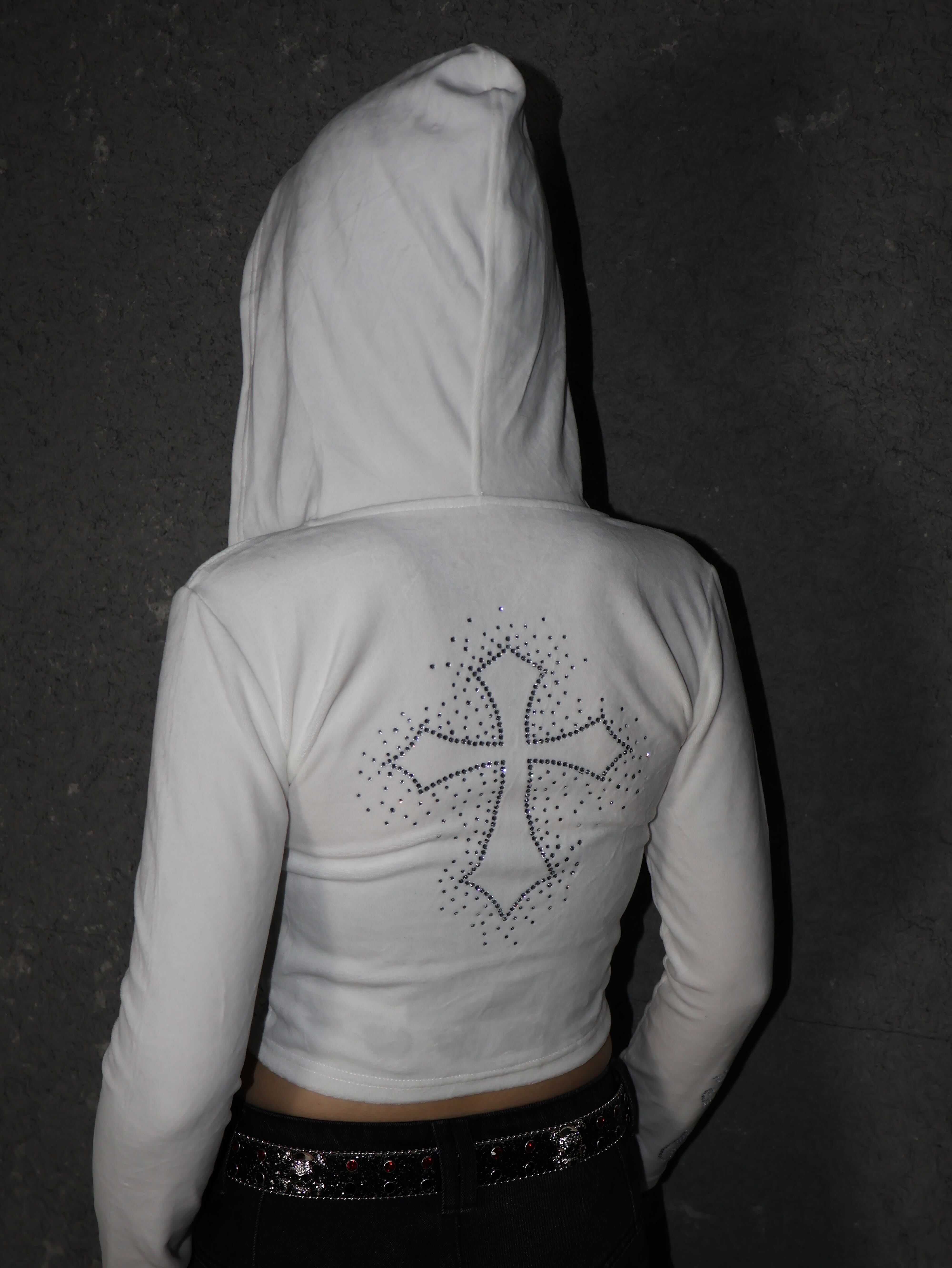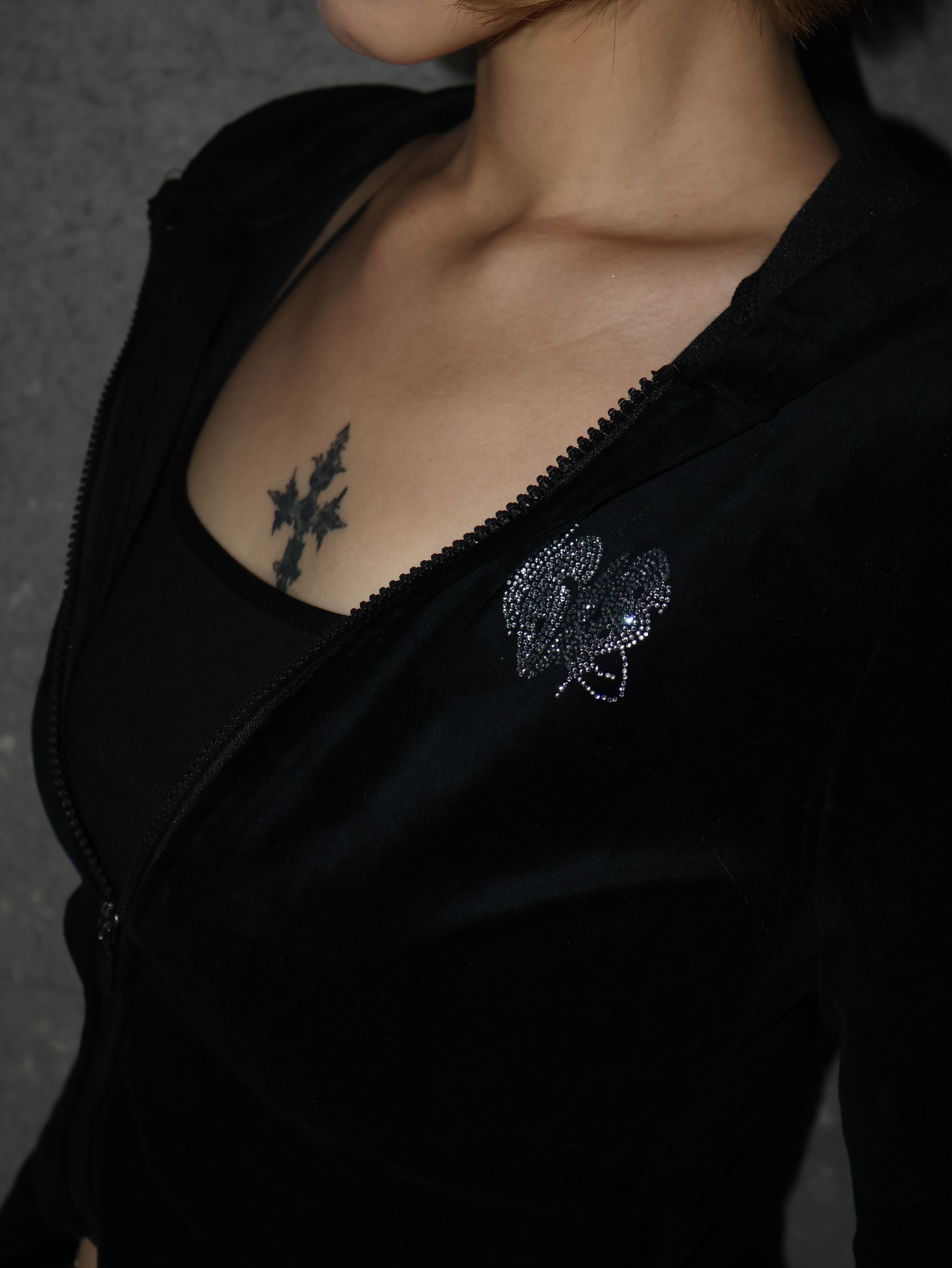 艶ベロア × ジルコン装飾で“強めに盛れる”Y2Kクロップドフーディ。