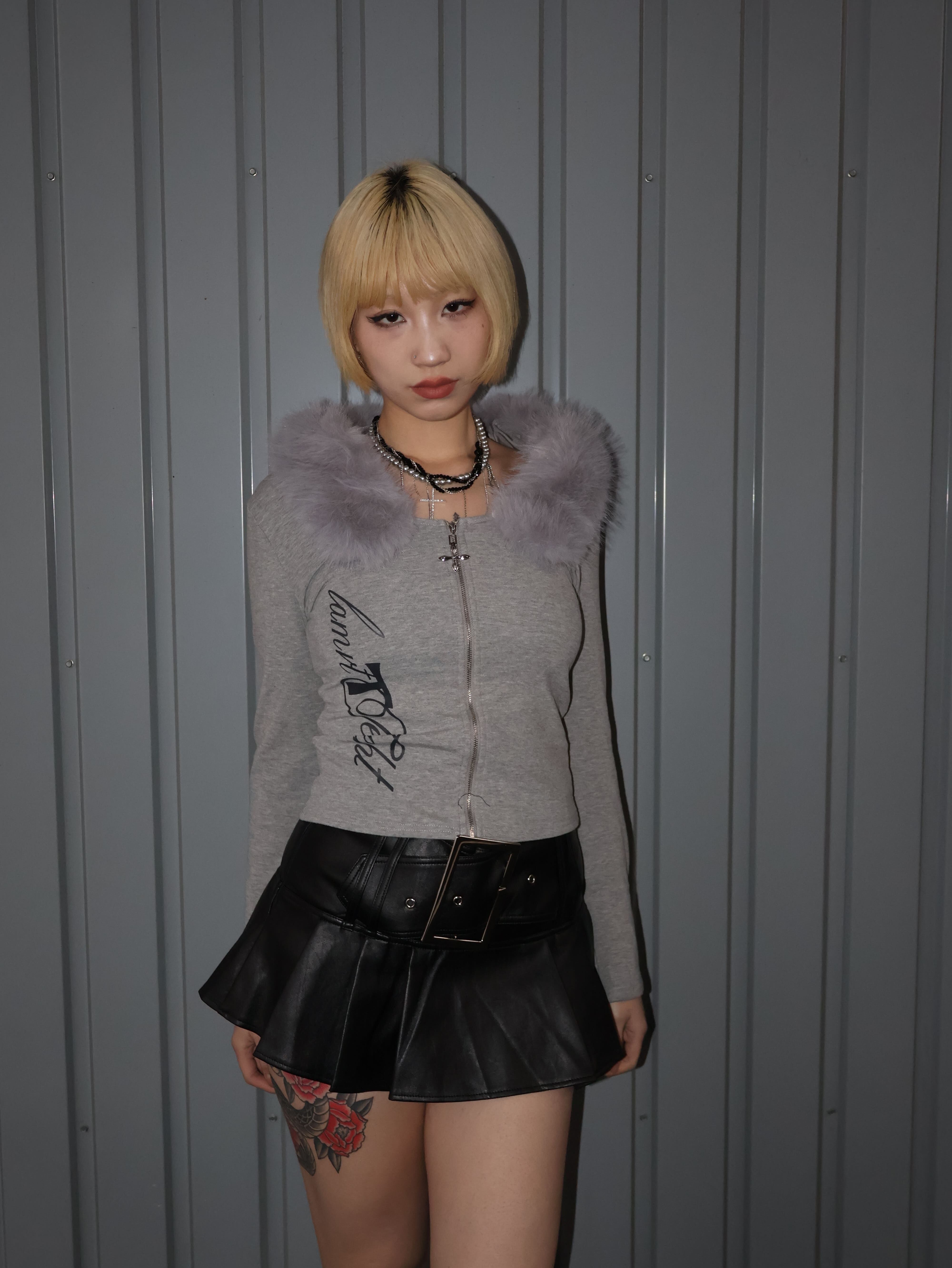 コンパクトトップス感覚。ミニ丈ボトム合わせで甘辛ギャル寄りに。