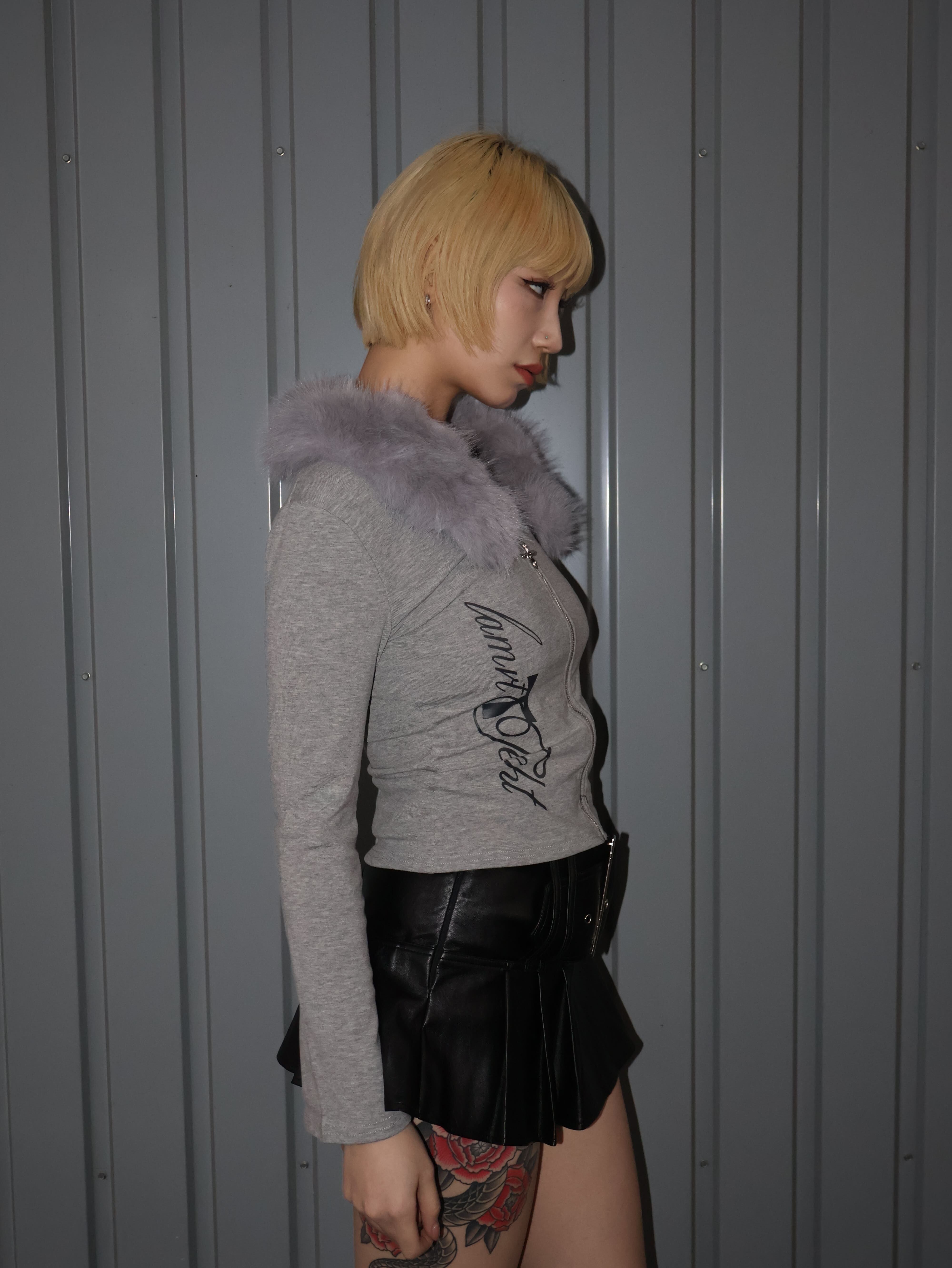 コンパクトな丈感と身体に沿うシルエットが、着るだけで一気にY2Kムードを引き上げるZIPフーディー。
