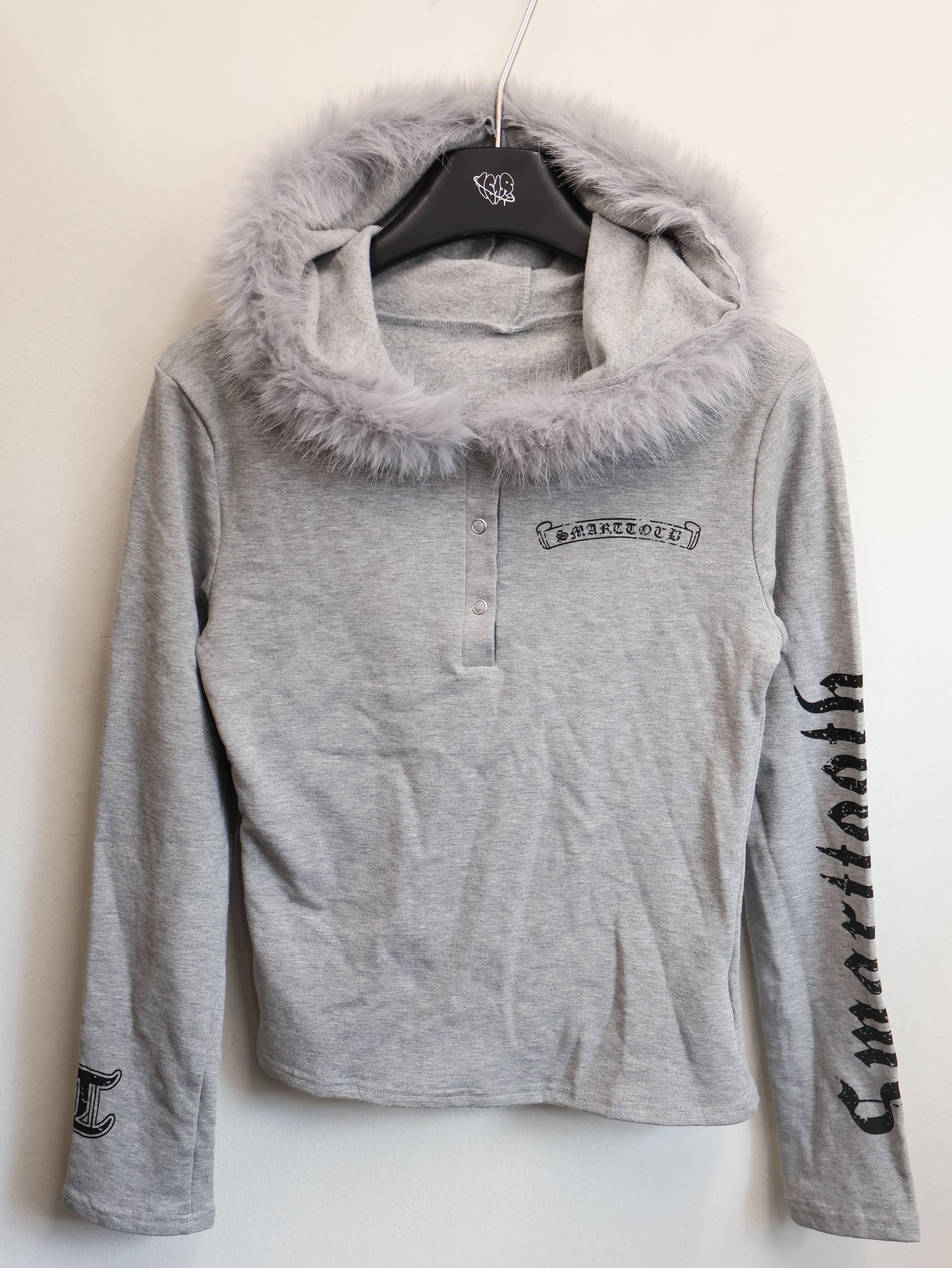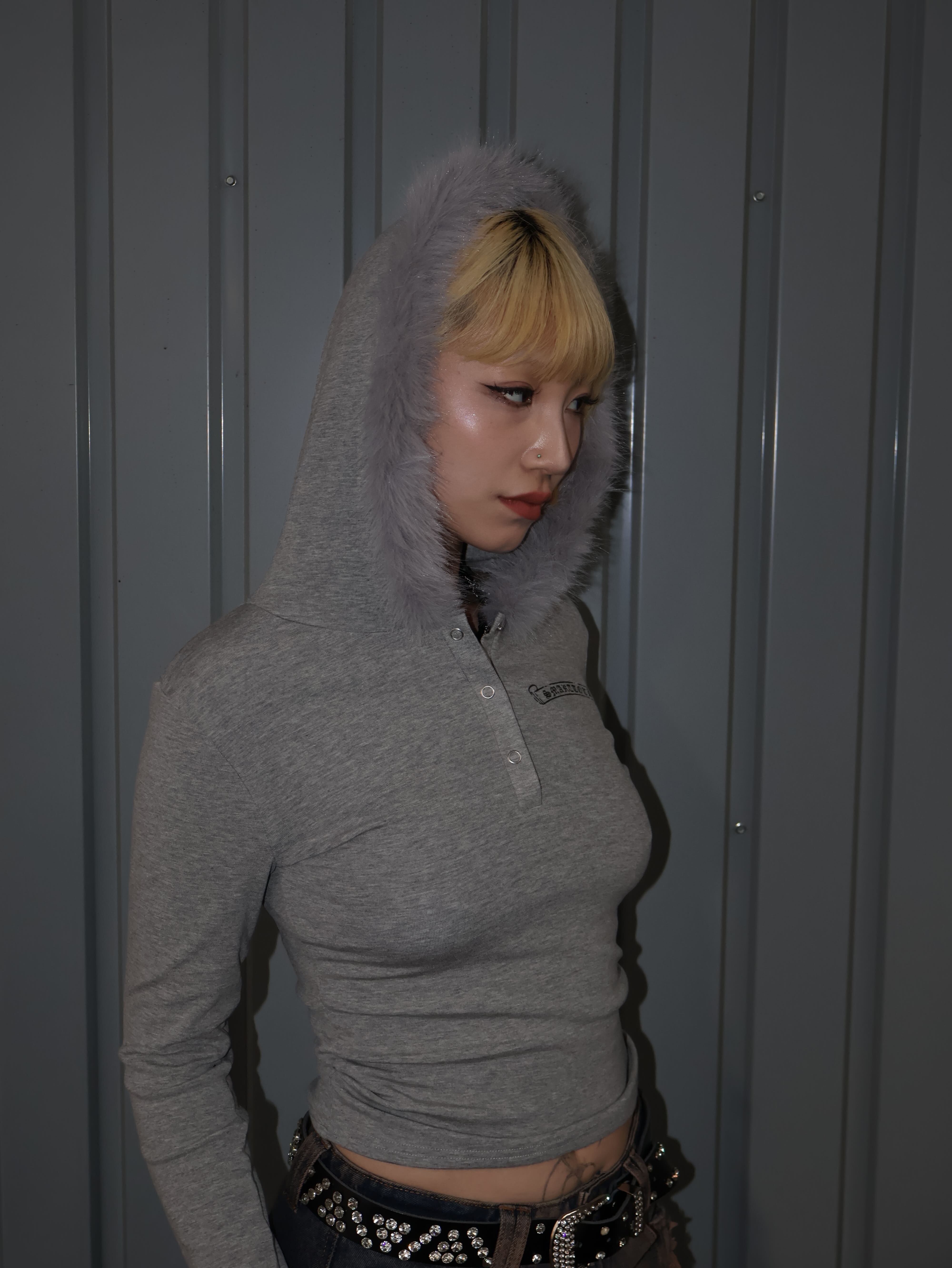 フード部分には存在感のあるファーをあしらい、顔まわりを一気に盛れるデザイン。