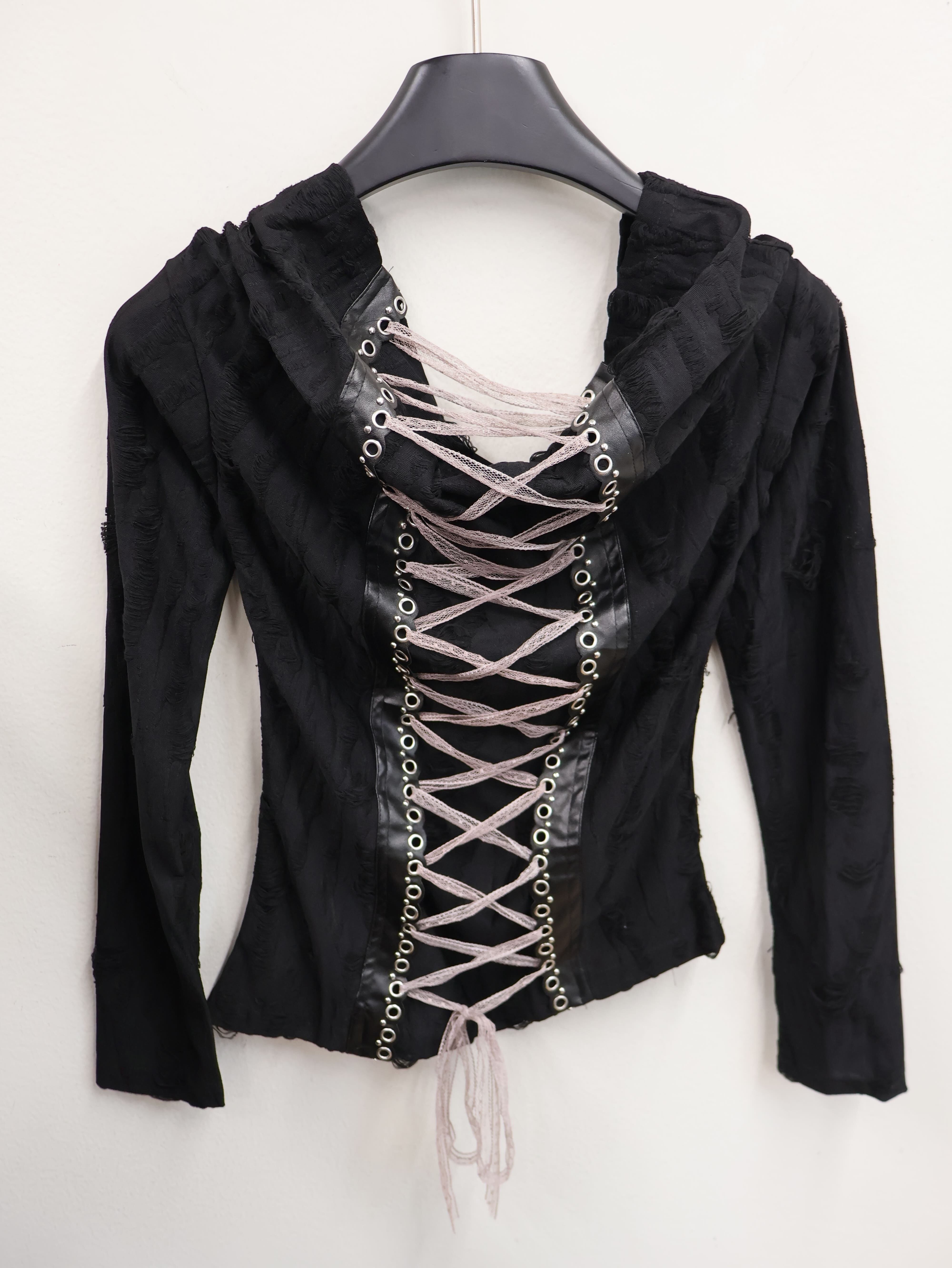 繊細な透け感のある薄手素材に、グランジ感漂うグラフィックを乗せたクロップトップ。