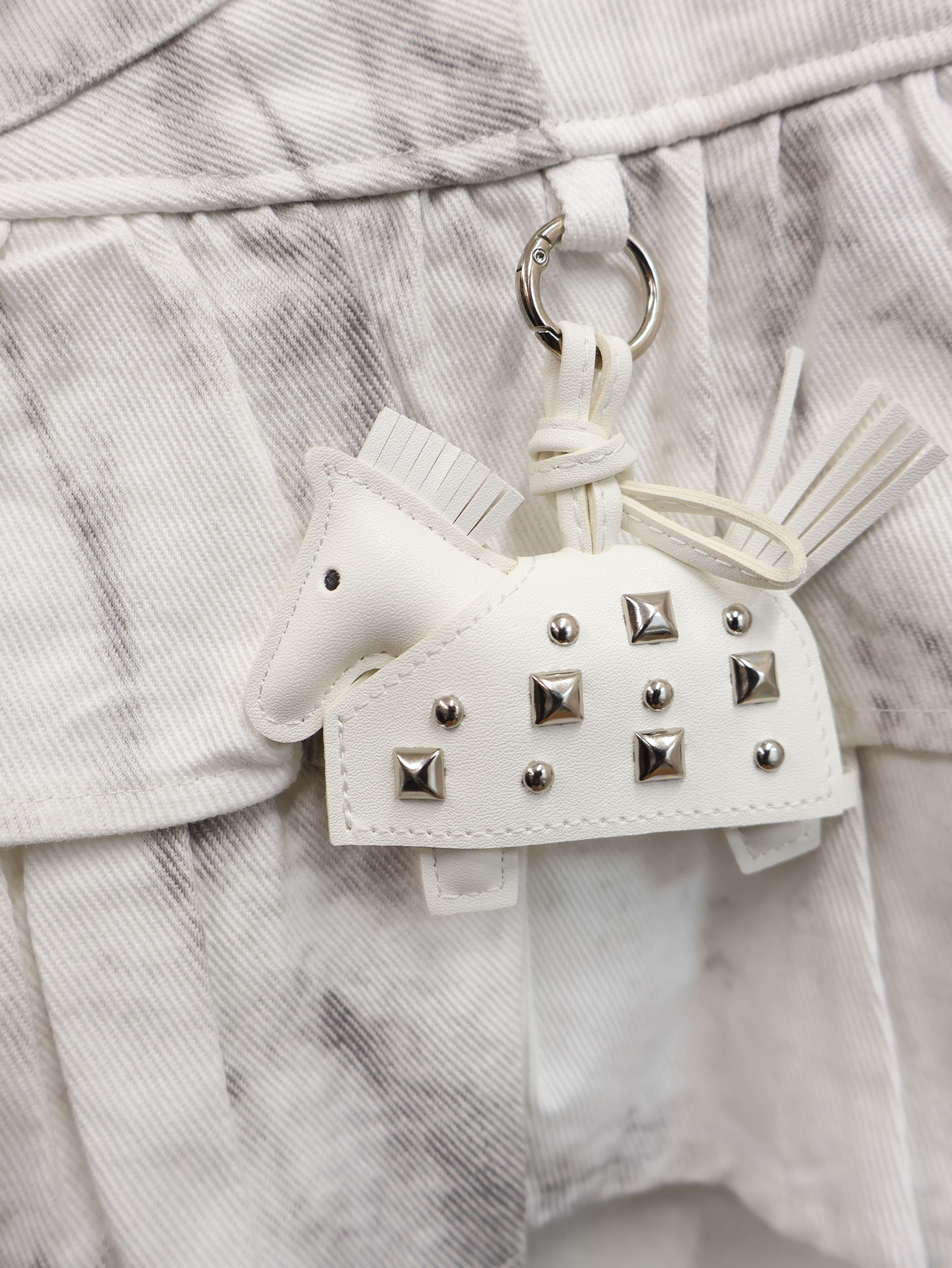 軽めのデニムライク素材に、グレーのマーブル調ウォッシュが入ることで、ただのホワイトでは終わらないストリート感。
