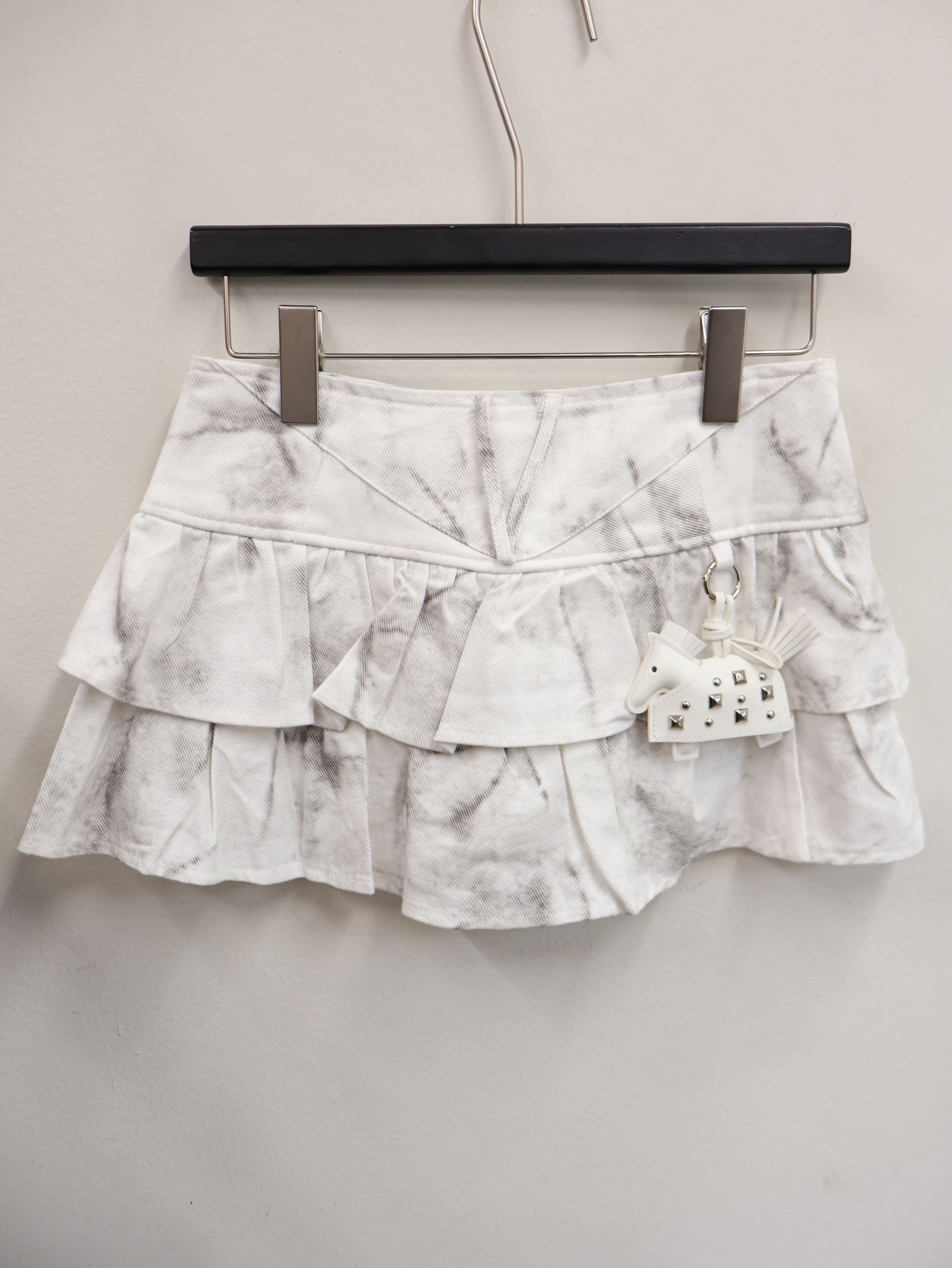 ミニ丈×立体フリルで自然に脚を長く見せ、履くだけで即Y2Kギャル感+スタイルアップが完成。