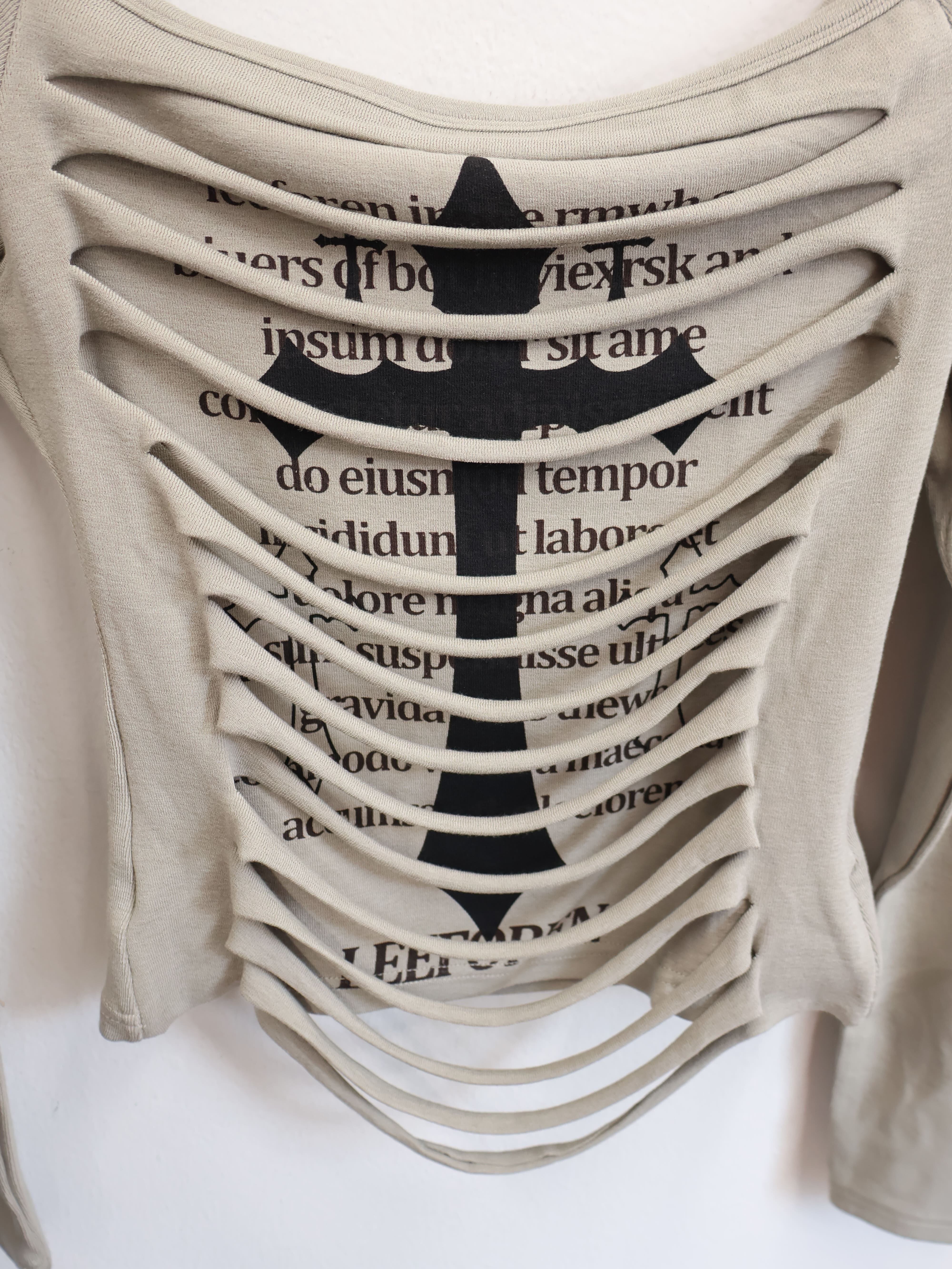 ・クロスモチーフ+英字プリントのレイヤード風仕様